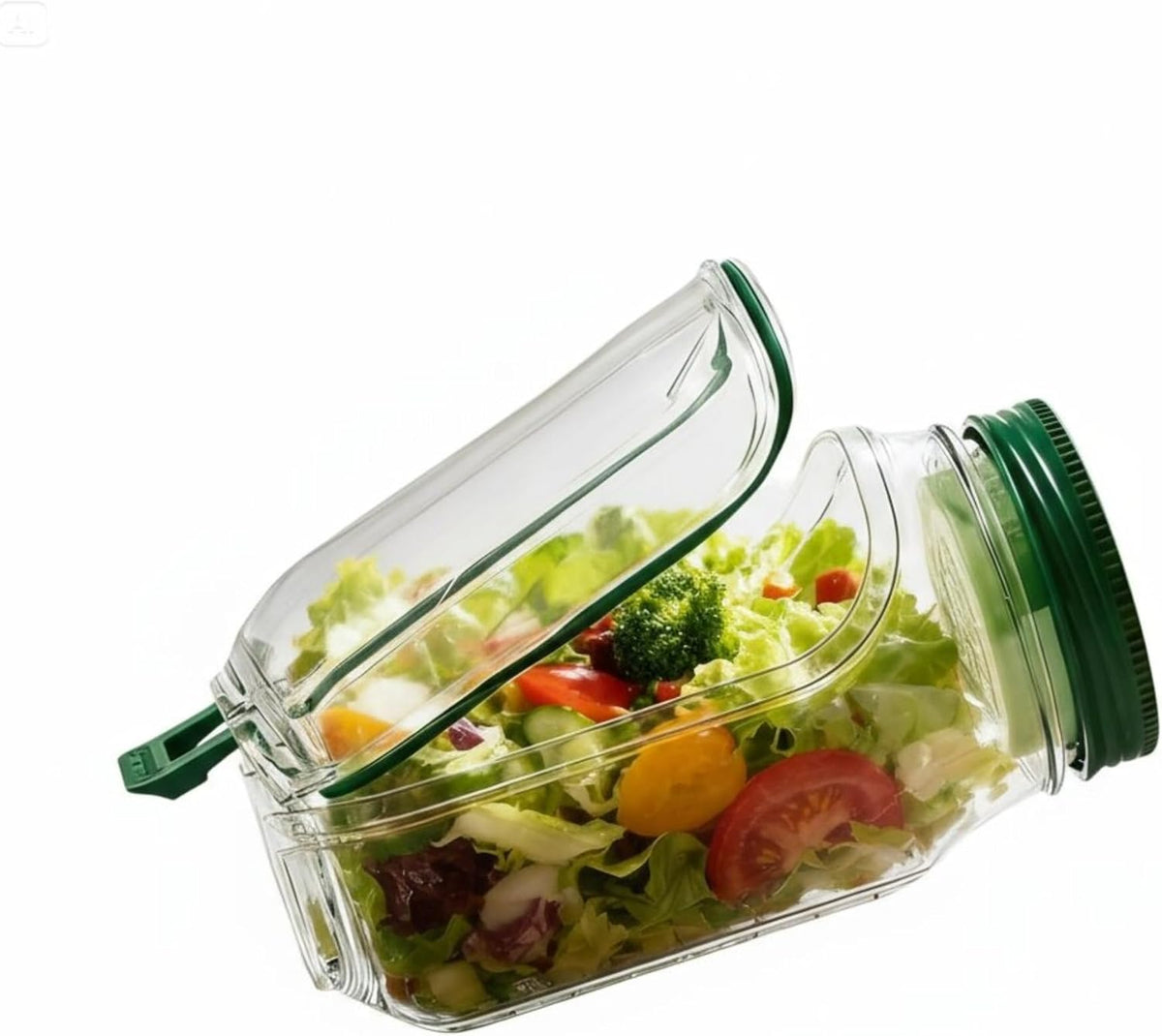Forget the hassle of digging through deep jars or carrying extra dishes. The ingenious side-opening design allows for easy access to every layer. Simply pour your dressing, give it a quick shake, and enjoy a perfectly coated, delicious meal directly from the container's ergonomic shape.